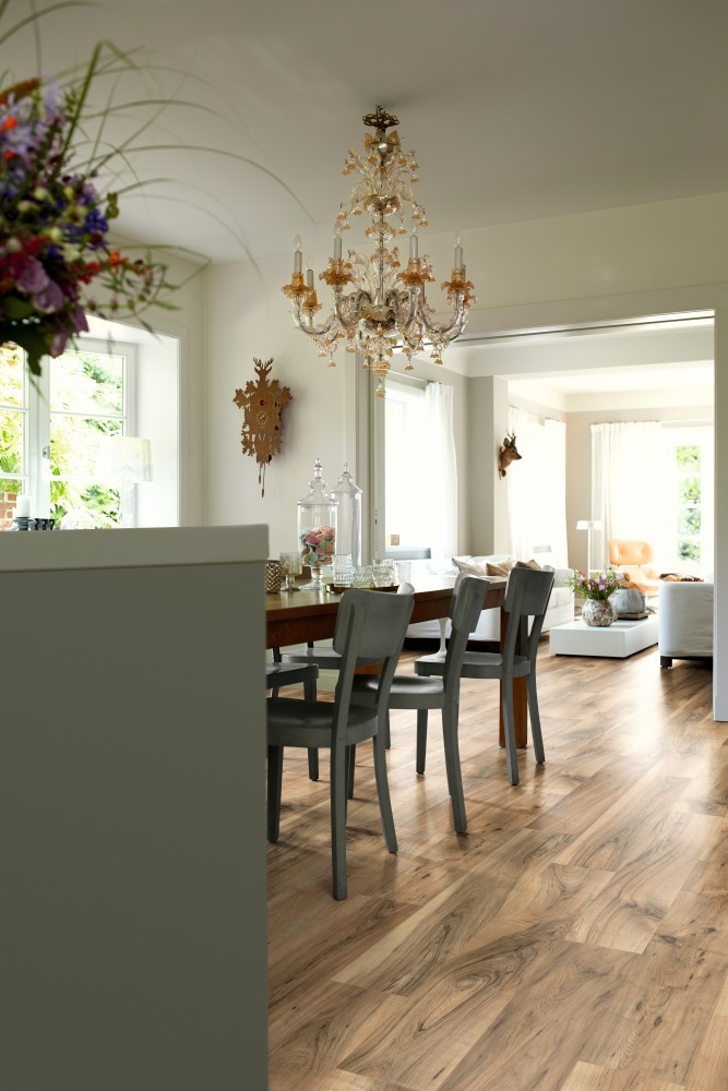 Laminátová podlaha NatureSense Aqua v dekore Orech Perganti hnedý vyniká výraznou textúrou a kontrastnými farbami, ktoré dodávajú interiéru živý vzhľad. Vďaka Aqua Clic it! inštalačnému systému a vodeodolnému povrchu je chránená pred prenikaním vody po dobu 24 hodín. Povrch OMNIPORE napodobňuje prirodzené drevo a je odolný, ľahko sa udržiava a vhodný na podlahové vykurovanie. zobraziť celý popis