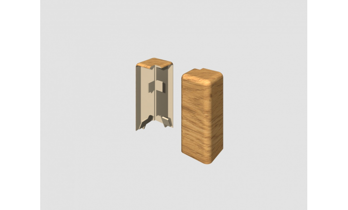 Rohové prvky EGGER sú praktickým a estetickým doplnkom k soklovým lištám, ktoré zabezpečujú čisté a profesionálne zakončenie spojov. Vonkajší roh EG51VO v dekore Dub caramel je určený na prekrytie vonkajších rohových spojov medzi soklovými lištami, pričom zároveň eliminuje potrebu presného rezania.