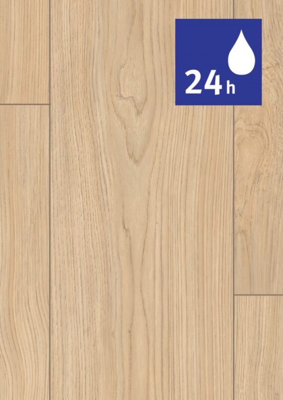 Laminátová podlaha EGGER NatureSense Aqua – Dub Casella prírodný svetlý vyniká vysokou funkčnosťou, atraktívnym dizajnom a je vhodná pre zdravý domov. Vďaka ochrane hrán proti prenikaniu vody, vodeodolnému povrchu, inštalačnému systému Aqua Clic it! a nosnej doske HDF+ na báze dreva je táto laminátová podlaha chránená proti prenikaniu vody po dobu 24 hodín. Podlaha NatureSense Aqua je skutočne všestranná a je ideálna do kuchýň aj súkromných kúpeľní.