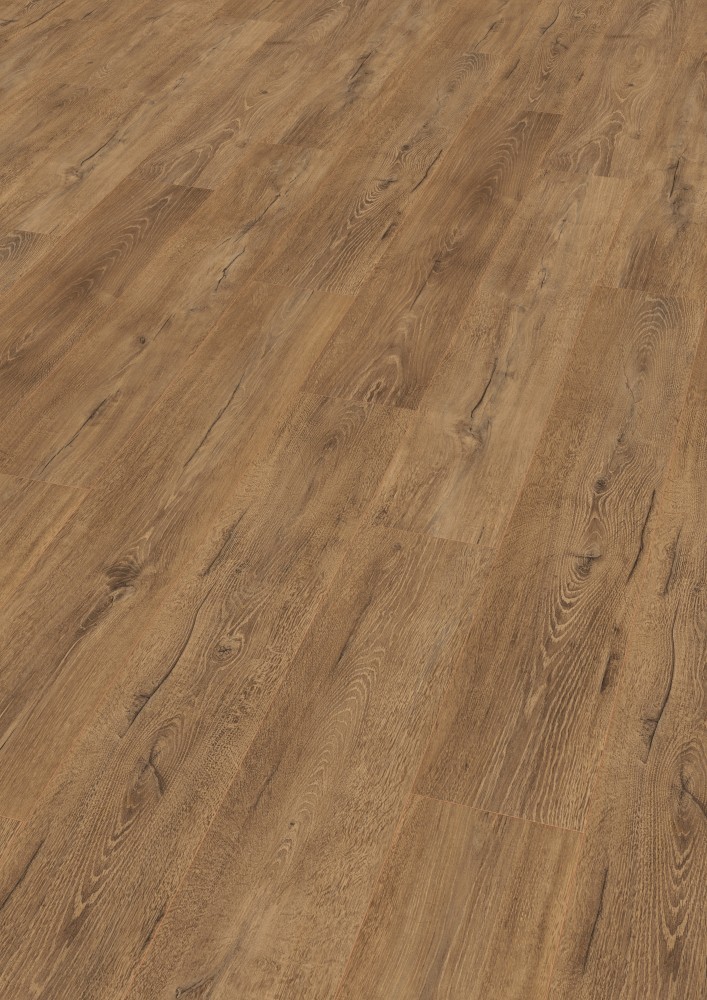 Laminátová podlaha NatureSense Aqua Dub Melba hnedý vyniká vysokou funkčnosťou, je atraktívna a vhodná pre zdravý domov. Vďaka ochrane hrán proti prenikaniu vody v kombinácii s vodeodolným povrchom, inštalačným systémom Aqua Clic it! a nosnou doskou HDF+ na báze dreva je táto laminátová podlaha chránená proti prenikaniu vody po dobu 24 hodín. Podlaha NatureSense Aqua je skutočne všestranná a je možné ju použiť aj v kuchyniach a v súkromných kúpeľniach.