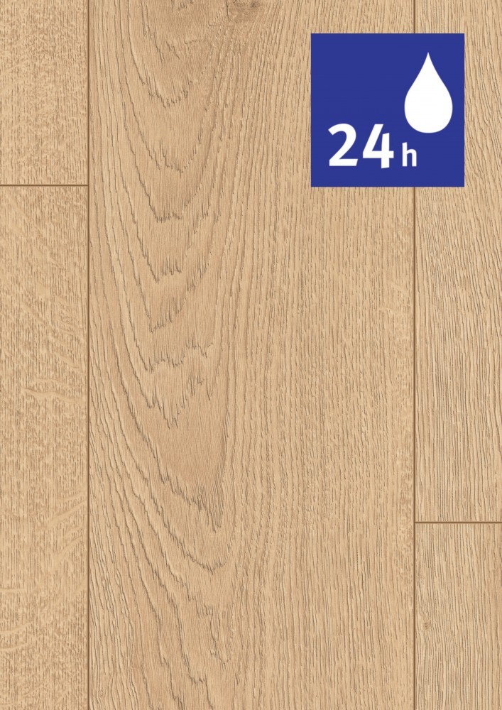 Laminátová podlaha NatureSense Aqua Dub Newbury svetlý vyniká vysokou funkčnosťou, je atraktívna a vhodná pre zdravý domov. Vďaka ochrane hrán proti prenikaniu vody v kombinácii s vodeodolným povrchom, inštalačným systémom Aqua Clic it! a nosnou doskou HDF+ na báze dreva je táto laminátová podlaha chránená proti prenikaniu vody po dobu 24 hodín. Podlaha NatureSense Aqua je skutočne všestranná a je možné ju použiť aj v kuchyniach a v súkromných kúpeľniach.
