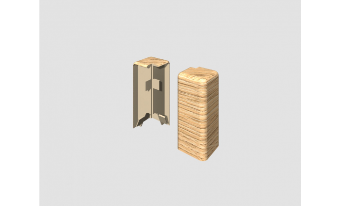 Rohové prvky EGGER praktickým a estetickým doplnkom k soklovým lištám, ktoré zabezpečujú čisté a profesionálne zakončenie spojov. Vonkajší roh EG42VO v dekore Dub Pieskový je určený na prekrytie vonkajších rohových spojov medzi soklovými lištami, pričom zároveň eliminuje potrebu presného rezania.
