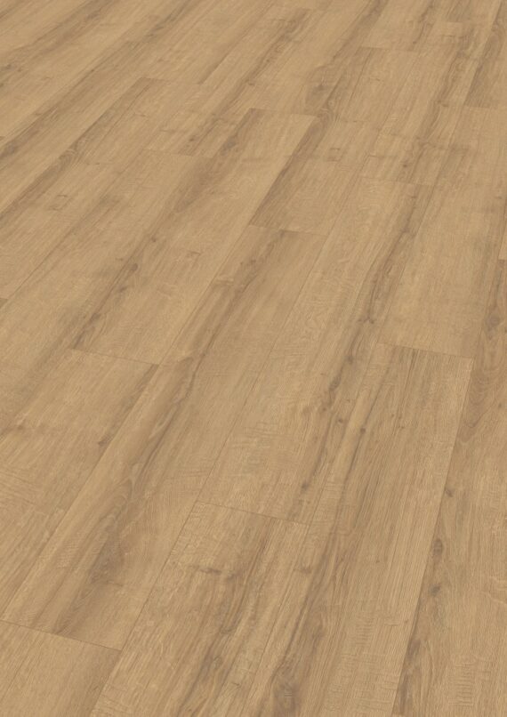 Dekor Dub Sherman medový pôsobí v interiéri teplo a prirodzene. Jeho rustikálny charakter v kombinácii s jemnými tónmi dreva vytvára útulnú atmosféru. Formát dosiek Classic a 4-stranné priznané drážky dodávajú priestoru elegantný a autentický vzhľad.