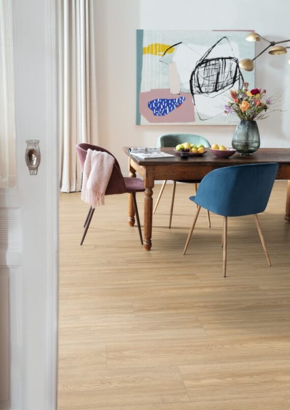 Dekor Dub Soria prírodný je autentický drevodekor, ktorý pôsobí elegantne vďaka moderným šedým prvkom a jemným pórom dreva. Podlahové dosky vo formáte Classic dodajú priestoru svetlosť a vytvoria príjemnú atmosféru. 4-stranné priznané drážky po celom obvode podlahových dosiek zvýrazňujú ich vzhľad.
